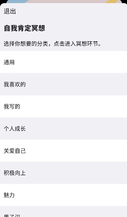 1、打开APP后,可从"个人成长"、"自我关怀"等分类中选择适合的冥想主题,开启专注练习。