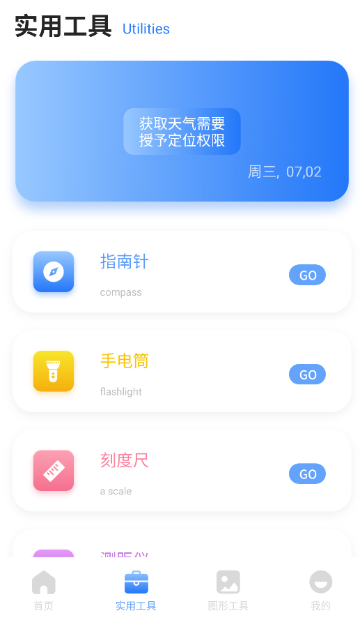 2、"便捷工具"集合实时天气预报、方向定位、应急照明和精准测量等十多种实用功能,满足日常需求。