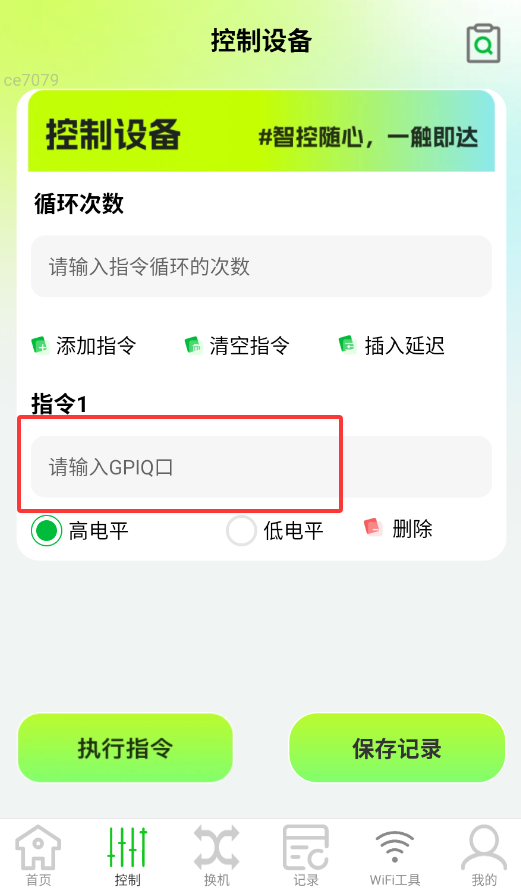 2、进入控制界面后,点击新增指令按钮,按要求填写设备GPIO接口编号完成绑定。