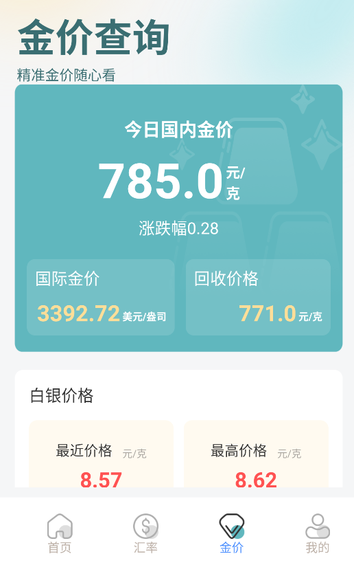 1、实时金融数据:直连国际贵金属交易所API接口,金价数据每分钟自动更新,确保信息准确及时,误差率低于0.1%。