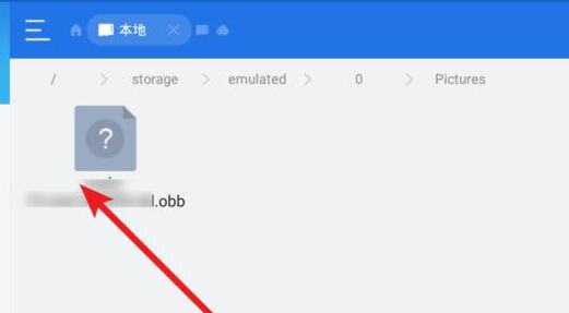 3、然后找到安卓手机的找到obb文件的位置:/storage/emulated/0/pictures