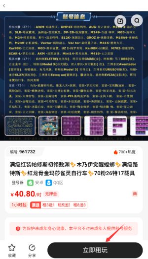 2、独创的账号严选机制确保每个上架账号都经过严格审核,提供0.2元起的超值租赁方案,让玩家轻松体验高端账号。