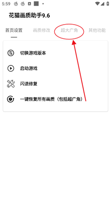 1、打开花猫画质助手,点击【超大广角】。