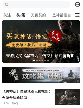 2、进入首页后,找到中央位置的【黑神话悟空攻略地图】,点击进入。