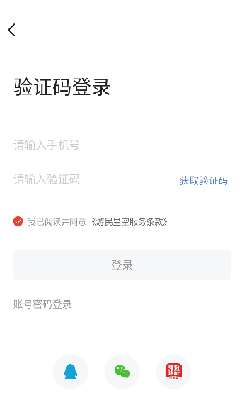 1、首次进入需要选择登录方式,可以用手机号、微信、QQ等方式。
