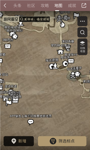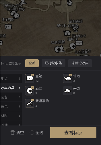 4、点击进入黑神话悟空互动地图页面,玩家可以查看地图材料、BOSS的位置。