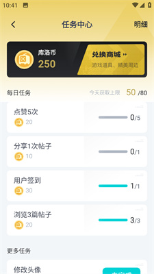 4、任务:设计了一个任务中心,任务都是比较简单的,完成任务之后获得丰厚的库洛币。