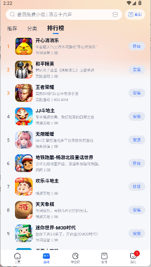 2.其中还有排行榜的功能,优质的游戏都会出现在排行榜上。