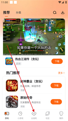 1、打开贪玩游戏盒,进入【云挂机】功能。