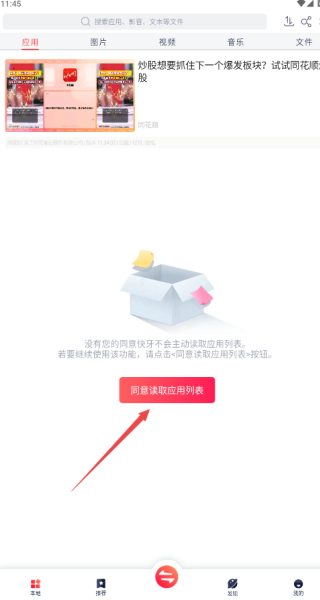 1、下载安装快牙app,进入首页,点击同意读取应用列表;