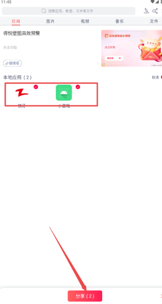 4、软件会自动搜索开启蓝牙状态的其他手机,然后上传选取的软件!