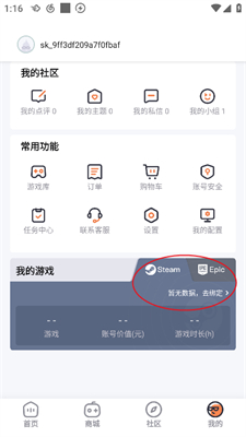 2、在【我的游戏】栏目下找到steam并去绑定。