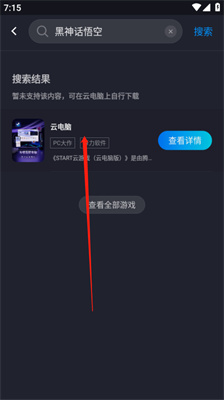 2、然后输入黑神话悟空,你会发现并没有搜索结果,但是你可以选择下方的云电脑!