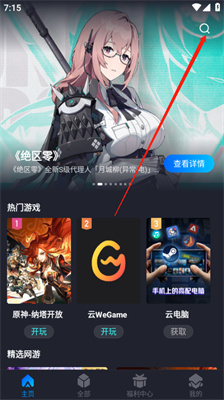 1、我们现在软件中选择一个游戏,然后进行云玩进入游戏当中!