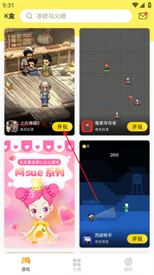 1、在游戏盒中选择一款想玩的游戏,点击【开玩】。