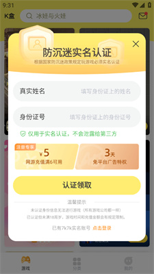 2、玩游戏需要进行实名认证,我们先完善好实名信息。