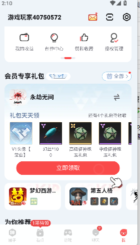 1.用户登录账号之后,点击【我】,就可以看到非常多的礼包了;