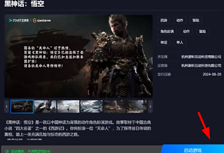 3、最后在WeGame找到黑神话悟空,点击右下角的启动游戏即可。