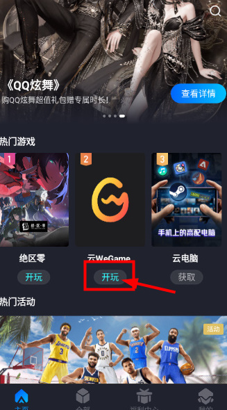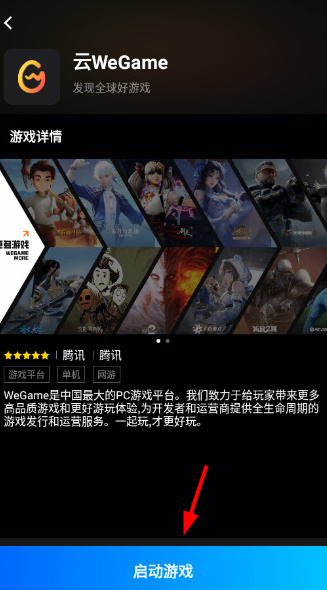 2、接着来到云WeGame的界面,点击下方的启动来进入端游WeGame页面。