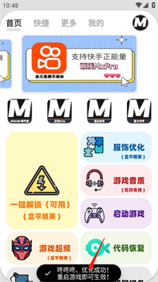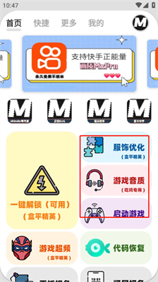 4、这里还有服饰优化,游戏音质,代码修复,启动游戏等等,直接点击就能用!