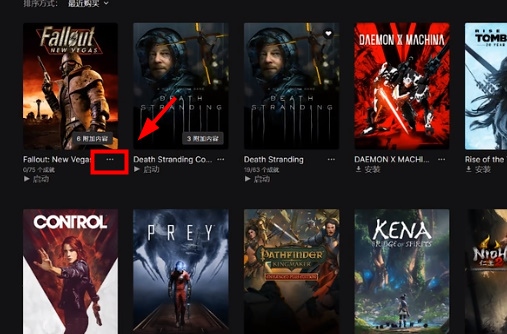 2、接着选择想要删除的游戏,点击“...”来打开游戏隐藏选项。