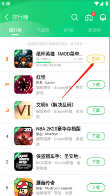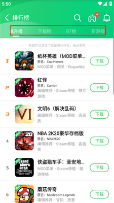 4、软件还贴心的将游戏进行排名,第一次是最好玩的,还可以查看其他榜单哦!
