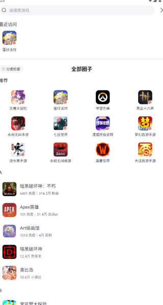 3、在这里能够看到更多游戏圈子,选择自己喜欢的点击即可;