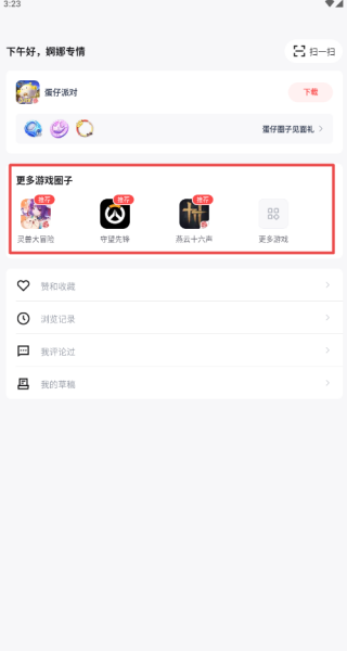 4、如果这里显示没有的话,点击后面的更多游戏,会显示更多游戏圈子!