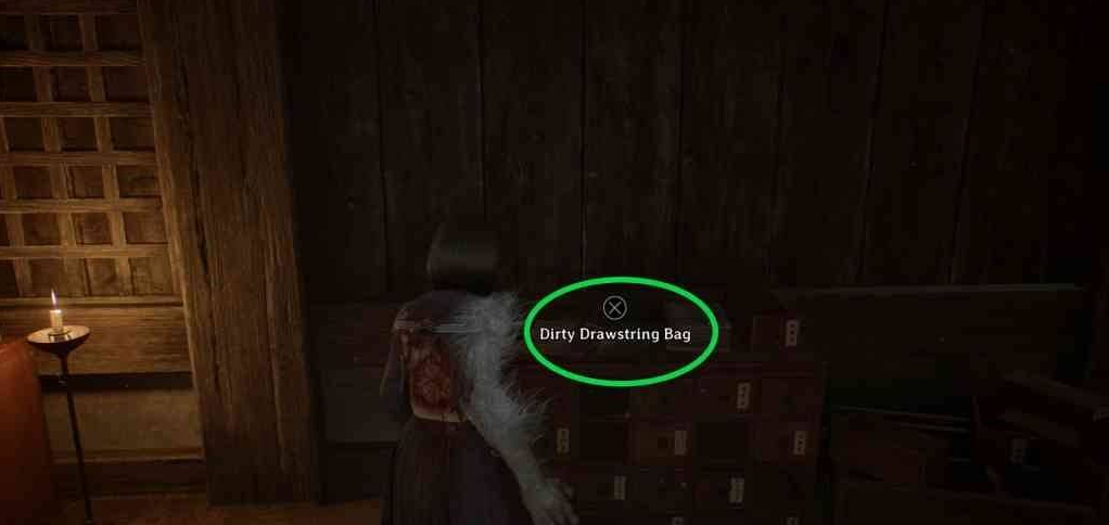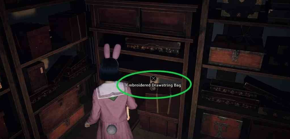完成第二个仪式并击败敌人后,来到两段楼梯处,上楼绕过破损地板区域,在抽屉柜上可以看到这个包。