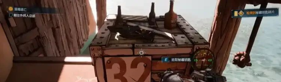 地图的最左下角的【海岸骨境】碎片就在海边的一个小木箱上