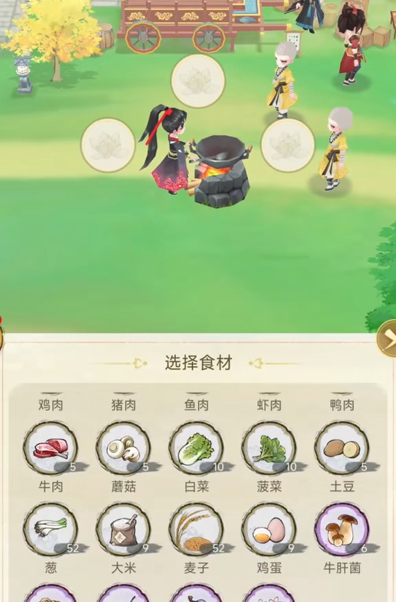 1.游戏中的食材获取方式多种多样。玩家在地图里进行采集、钓鱼、种田等行为,都能为自己获取食材。比如在野外的树林中采集野果、在河边钓鱼、在自家农田里种植小麦、蔬菜等作物。完成一些支线或随机事件后,所获得的报酬里也常常包含不少食材。像帮助一位农夫解决农田害虫问题,可能就会得到他赠送的一些新鲜蔬菜作为报酬。