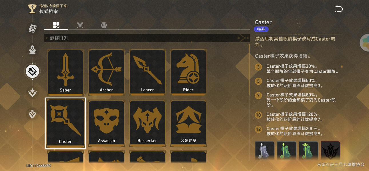 1.前期:主要用于补充核心职阶棋子数量。比如使用“必出4阶Lancer棋子”的令咒,确保在前期能快速凑齐核心职阶的低星棋子,激活基础羁绊,提升队伍初期战斗力。