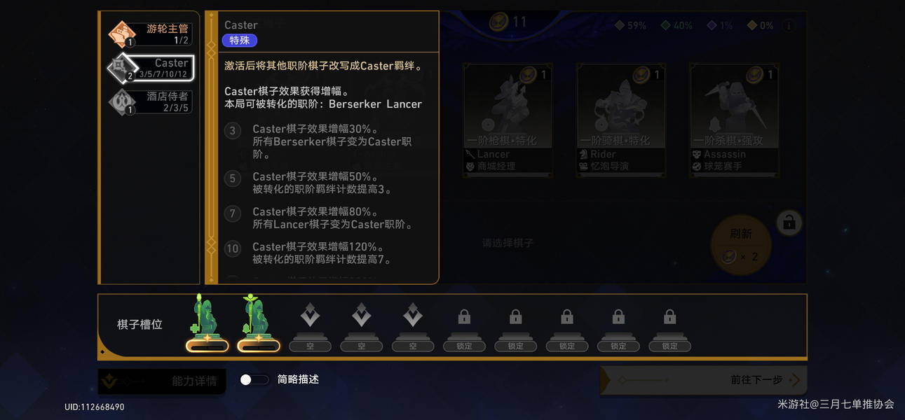 1.3+7模式:以7个核心职阶棋子(如7个Lancer)搭配3个其他职阶棋子(如3个Rider)。这种组合能让核心职阶的羁绊效果得到充分发挥,同时借助其他职阶棋子的通用增益,提升队伍整体实力。