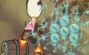 大桶掉落时,先避开第一波冲击,待其分裂出4个小部件后,再次调整位置躲避二次攻击。