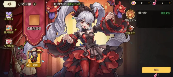 - 可以选择支持自己喜爱的女神角色,每次应援可以获得“绮情邂逅”和“应援积分”。