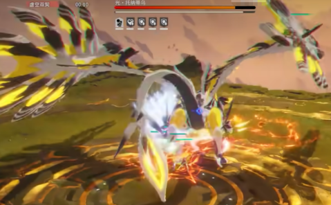 3.boss半血触发时空的中间读条二十秒,且召唤四只光灵和两只剑灵造成伤害,团队需要将其击杀。读条结束后,boss撬回内场,场地出现两座空岛的指向标志,此时需要分开队伍分别前往左右空岛处贴墙,按W前行,龙会将玩家击飞,玩家借此上岛进行输出。来到岛上后,两边队伍同步打掉对应水晶的护盾,打掉护盾后会出现传送门,两队进入传送门交换位置,继续同时打掉水晶,否则水晶会复活。同时打掉水晶后,boss会陷入能量紊乱,即虚弱状态,玩家可趁机全力输出。