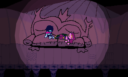 第一章是整个系列的开篇之作,为玩家打开了通往神秘世界的大门。玩家将操控人类少年Kris,与校园中被称为恶霸的Suzie一同经历意外后,坠入一个充满奇幻色彩的暗黑世界。在这里,他们遇到了温和的Ralsei王子,并接受了封印黑暗喷泉以阻止两个世界失衡的使命。此章中,游戏独特的战斗系统初露锋芒,除了常规攻击,玩家还可以通过行动指令与怪物交流、安抚,防御指令也能有效降低伤害,这种非纯粹战斗的方式为游戏增添了别样的策略性。