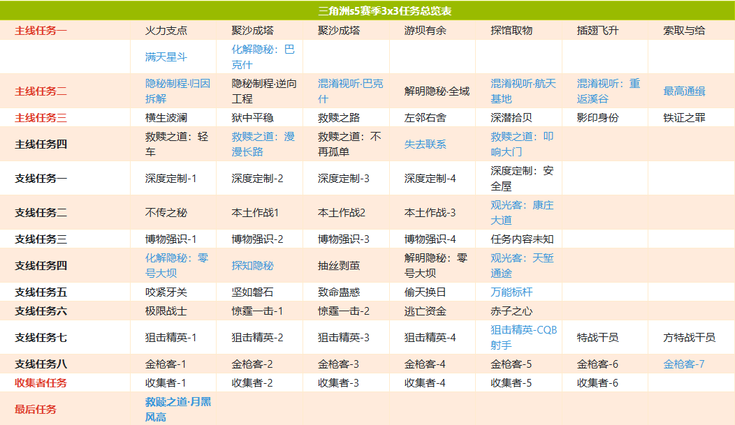三角洲行动S5赛季的3x3任务总共包含9个任务。