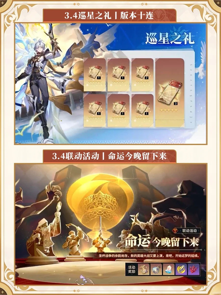 崩坏星穹铁道3.4版本【因为太阳将要毁灭】即将于7.2日正式开启,本次更新不仅带来Fate联动限定角色Saber和Archer,还有免费五星角色、全新光锥以及丰厚的星琼奖励,小编详细参考了前瞻特别节目展现的各种信息,详细为你解析卡池分析、活动指南、版本兑换码等相关信息,帮助你在崩坏星穹铁道3.4版本开个好头。