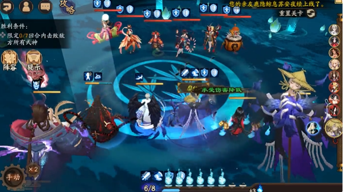 七、入内雀三技能给最低血量的;