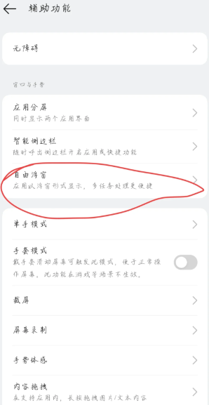 2、点击“自由浮窗”选项。