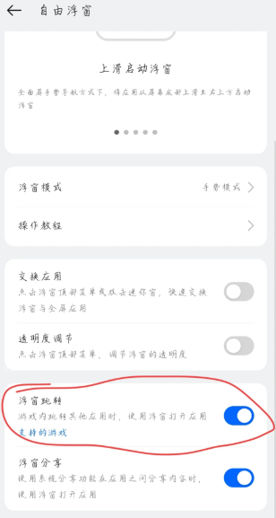 3、点击“浮窗跳转”旁的小滑块,变暗后即可关闭。
