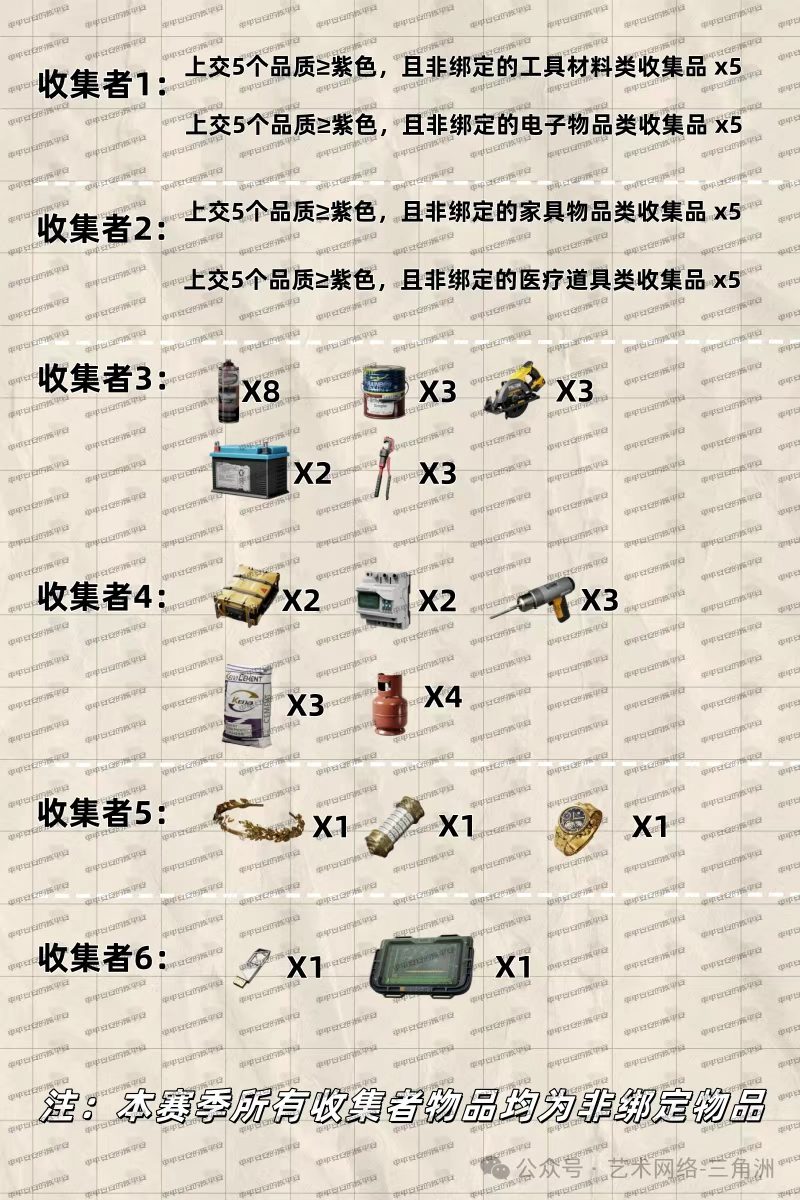 三角洲行动S5赛季已上线,新赛季最受欢迎的活动非3x3保险任务莫属。而在三角洲s5赛季3x3任务当中收集者环节是非常重要的,需要提前准备相关物品,这些物品被分为六个不同的收集者类别。下面就一起来看看三角洲s5赛季3x3任务需要哪些收集者吧!