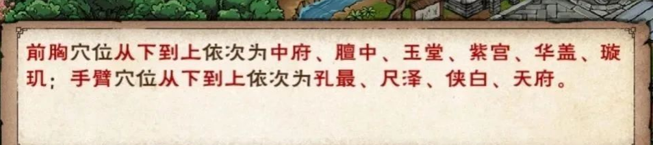 2.去(11,18)触发剧情,原地对话壮硕男子,需要注入内力,如图红字提示,按照题目选下一个穴位。