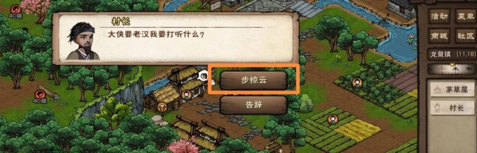 8.向村长(11,18)打听「步惊云」,获得5顺脉丹、2洗髓丹。