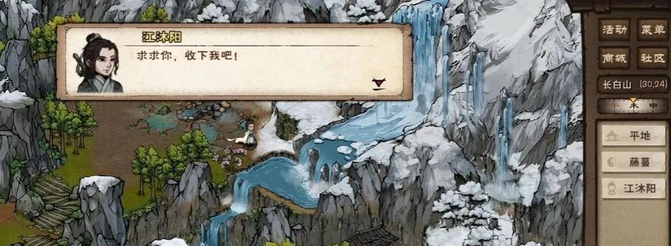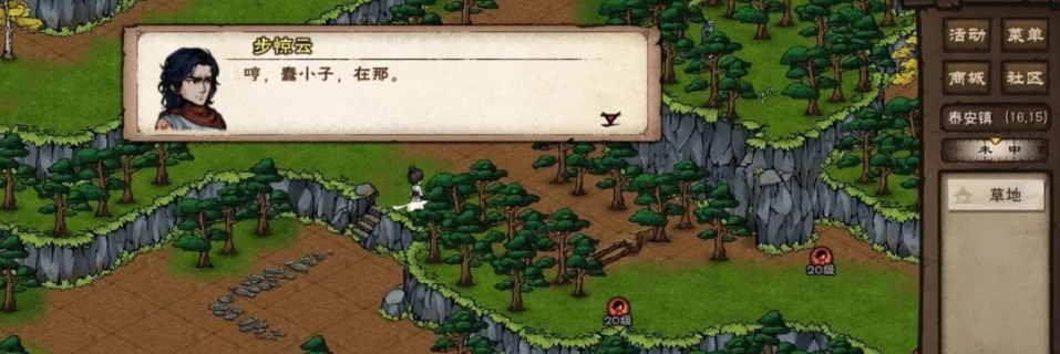 1.在(30,24)触发剧情,原地对话江沐阳,(可原地点击藤蔓攀爬上去),然后在(32,21)多次对话步惊云,触发单挑战斗,剧情后给予烧刀子。