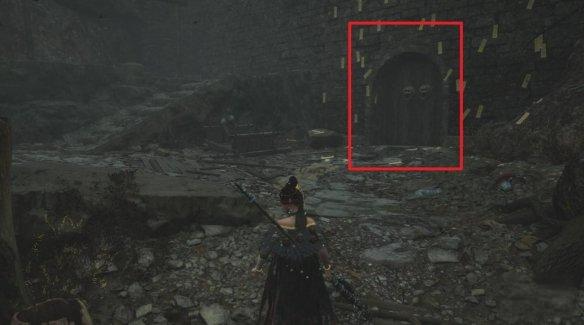 3. 当我们到达行宫后,需要找到并打开贴有符咒的木门。