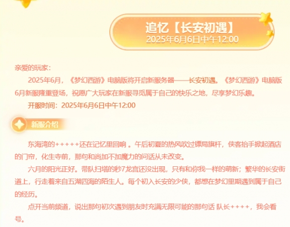 梦幻西游2025七月份就开了一个新区!