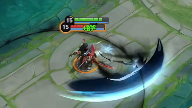 镰刀常驻:被动「 幽影之力 」使镰刀实体化并常驻,提升移速和普攻范围,普攻附带真实伤害。