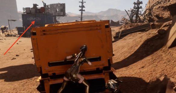 四、把补给箱推到集装箱的位置,踩着补给箱上集装箱,四号机器人就在集装箱上面